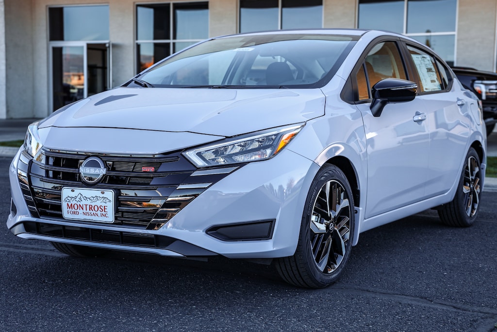 View this new 2025 Nissan Versa Sedan 1.6 SR for sale at Montrose Ford Nissan Inc., serving the Delta, Cedaredge, Ridgway, and Gunnison area with new Nissan Versa sales.